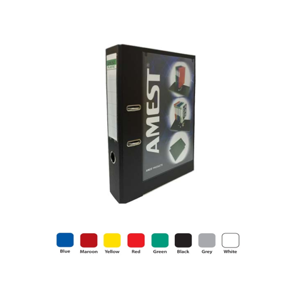 Organise all your important documents and ensure that they remain dust-free with Amest Box Files. Arrange your documents safely and securely in the box file. Designed with an internal lock spring, it firmly holds your documents in place. To ensure easy retrieval, you can use the large label area on the spine for naming this box file. Made of good-quality board and paper, it is durable and will last you long. This box file is sufficiently large and is suitable for storing foolscap-sized documents.