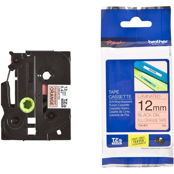 Brother TZe-B31 Labelling Tape Cassette 12mm x 8m - Black on Fluorescent Orange (pc)