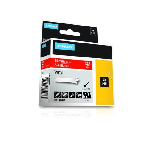 Dymo Rhino 1805422 Vinyl Tape 19mm x 5.5m - White on Red (pc)
