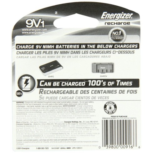 From the stable of Energizer line of rechargeable batteries comes Energizer 9V NH22 Rechargeable Battery. It has a 175mAh charging capacity. This battery produces better performance than other competing 9 volts rechargeable batteries currently in the market, delivering consistent voltage supply for a wide array of miniature devices and toys. The Energizer 9V Rechargeable Battery‘s reliable NiMH chemistry power can operate at a wide spectrum of temperatures. Reliable and environmentally friendly, this high powered 9V Block rechargeable battery maintains its performance even if charged over and over again without damaging the cell itself. Also perfect for testers, RC transmitters and other high-tech devices. For best results, pair your 9V Energizer Recharge NH22 with Energizer battery chargers.