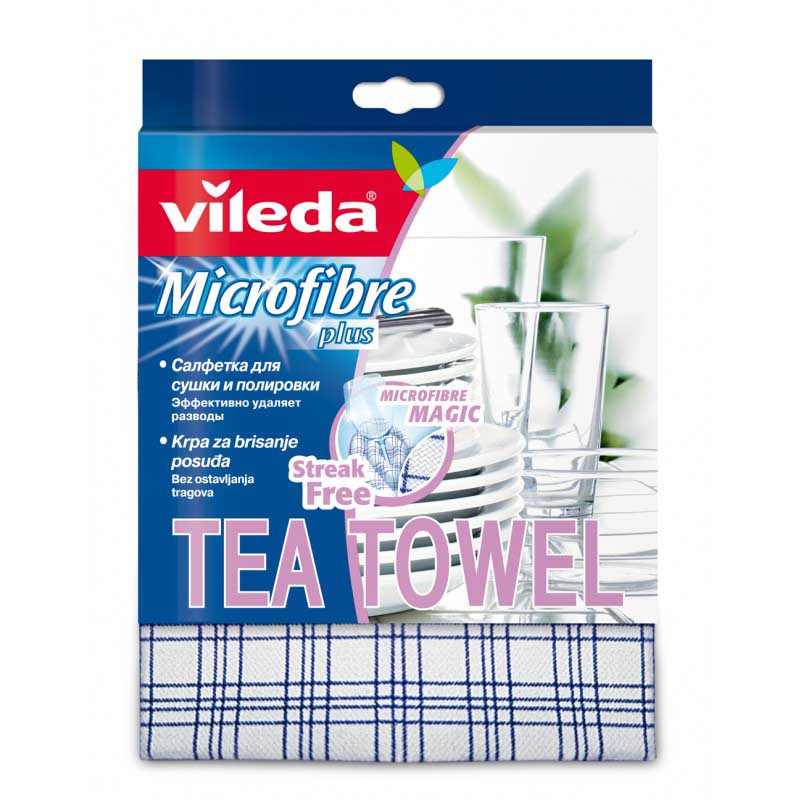 The Vileda Microfibre Tea Towel dries faster than normal cotton towels. It is quick drying and polishing without leaving lint and can be washed by hand or machine. A clean and streakfree result of glasses and dishes is similary important as the good quality of foods and drinks. With our tea towel you can be sure that your guests will be satisfied with the cleanliness.